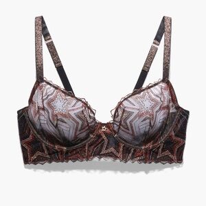 New Savage x Fenty Shining Star Embroidered Unlined Henna Red Star Demi Bra