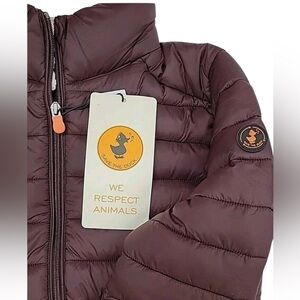 New Save The Duck Camilla Puffer Full Zip Packable W/Pouch Coat Burgundy Small