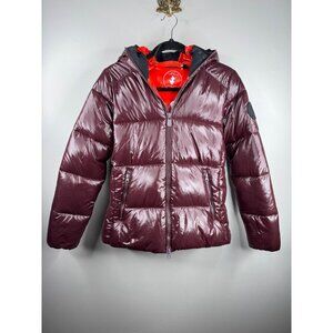 New Save the Duck Short Jacket Puffer Hooded Burgundy Size XS