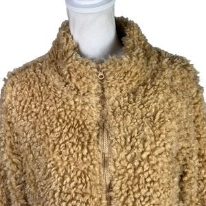 New Say What Sherpa Bomber Jacket Medium Taupe Zip Up