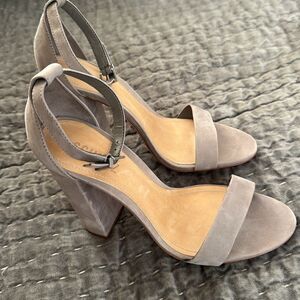 New, never worn suede sandals! The mouse color is a taupe or greige. Tan / gray heel. No box!