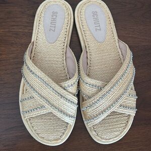 New Schutz Carlotta Crystal Rafia flat sandal new, no box size 10