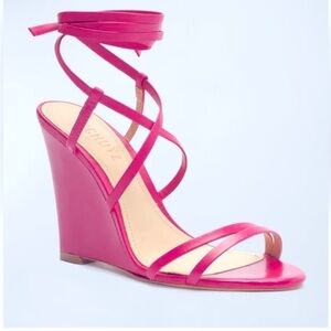 New Schutz Deonne Casual Nappa Leather Sandal Fuchsia Pink Wedge Wrap Sz 7