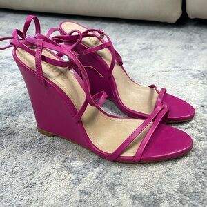 New Schutz Deonne Casual Nappa Leather Sandal Fuchsia Pink Wedge Wrap Sz 7