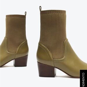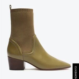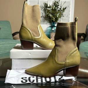 New Schutz Leather Sweater Knit Mid Boots - Camille Knit color green size 8