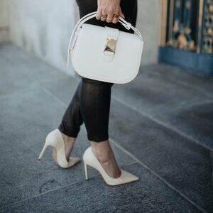 New Schutz Lou Pump in White leather high heel bride reception pointed toe