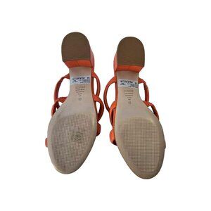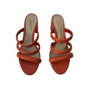 New Schutz Olly Orange Leather Slip On Strap Heel Open Toe Sandal Size 7.5B