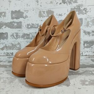 New Schutz Zayne New Pressego Tan Patent Leather Platform Mary Jane Pumps T312
