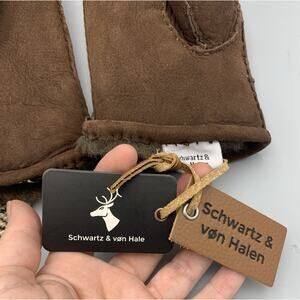 New! Schwartz & Von Halen Suede Mittens With Sheep Fur Lining Size L (8)