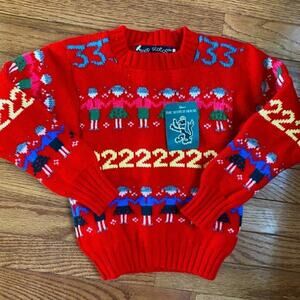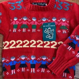 New Scottish Scotland Made Lambswool Kids Fair Isle Red Sweater 24” US3-4T