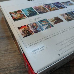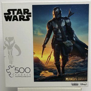 New Sealed Star Wars Mandalorian & Baby Yoda 500 Piece Puzzle by Buffalo Games. Disney 500 Piece Jigsaw Puzzle competed size is 15x22.25 Inch. Puzzle Diagram is included. Made is USA with US and Imported Materials. Made with 100% Recycled Paperboard. For Ages 8+