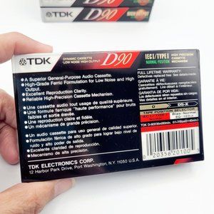 This is a lot of 6 NEW and Sealed, TDK blank D 90 cassette tapes. They are the "dynamic cassette tapes", low noise and high output (IECI/Type I).