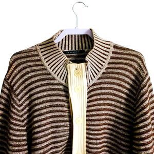 New Sean John Cardigan Sweater Mens XXL Tall 2XLT Ribbed Button Up Brown Stripes