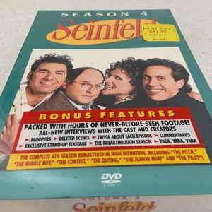 Relive your favorite Seinfeld moments like never before in this four-disc set with all 24 episodes from the fourth season remastered in high definition for the best possible picture and sound quality! With approximately 13 hours of exclusive special features from the creative talents behind the show, this DVD is a must-own! Actors: Estelle Harris, Jason Alexander, Jerry Seinfeld, Jerry Stiller, Julia Louis-Dreyfus, Special Features: Full Frame Format. Language: English / Add. French, Spanish / Sub. English, Portuguese, Spanish, French Year: 1994 Runtime: 552 minutes.
