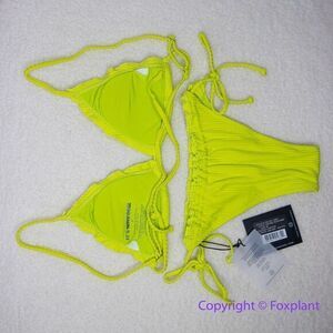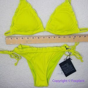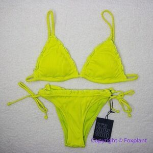 New! Set! It's Now Cool x Free People the frill tri eco neon lime rib bikini, M