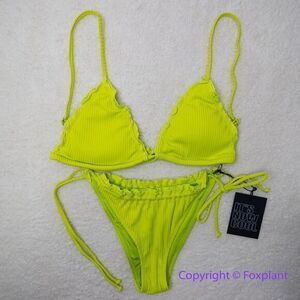 New! Set! It's Now Cool x Free People the frill tri eco neon lime rib bikini, size L