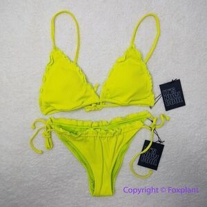 New! Set! It's Now Cool x Free People the frill tri eco neon lime rib bikini, size XL
