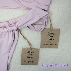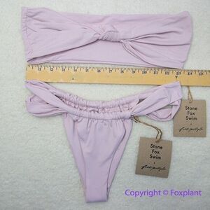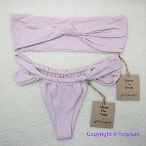 New! Set! Stone Fox Swim lele knotted bandeau top bijou bottoms, size M. pink/lilac