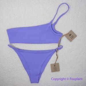 New! Set! Free People xToast Signature One-Shoulder Bikini Top & String Bikini Bottom, in purple