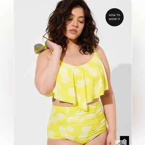 New! Set! Torrid sz 3 Pineapple Swim Bathing Suit Flounce Top Bottoms 3X