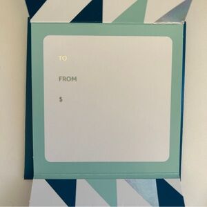 Trifold style card. Has a slot for gift cards and an area to write a to and from message
