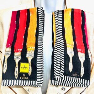 New Set of 2 Fendi MiniScarf/Handker Cotton 18" Paint Brush Colors (28)