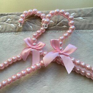 New Set of 2 Pink Pearl Hangers with Satin Bow Ribbon Clothing Glam Girlie