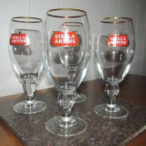 New Set of 2 Stella Artois Gold Rimmed Beer Glasses/"Chalices" from Belgium