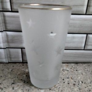 * FOUR Gold Rim Drinking Glasses have Frosted Body with Clear Glass Stars Throughout.