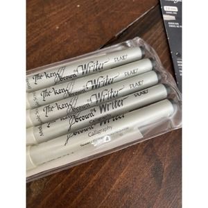 This lot includes one pack of five writing pens in brown by Plaid: one, fine, one medium, one double scroll, one multiple scroll, one Broad.