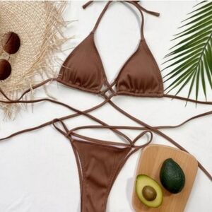 New Sexy Ribbed Strappy Bikini Set Swimsuit Size L