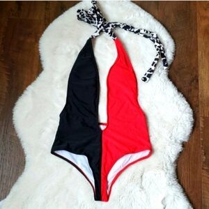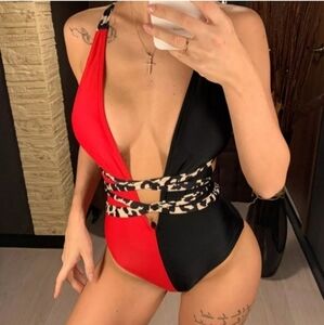 New Sexy V-neck Wrap Around Monokini Red Black Swimsuit Size S