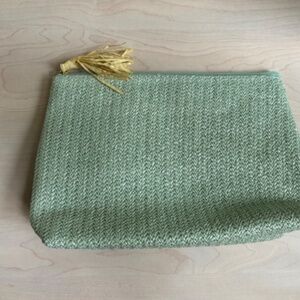 Stunning New Sharif Celadon Leather Embroidered Floral Bag & Anuschka Blue Wallet & Clutch 3 Piece Set. This beautiful set an be used together or separately. Sharif celadon green genuine leather embroidered floral satchel handbag with impeccable craftsmanship. This very unique and beautiful handbag has a full zipper closure and an outside zipper closure with leopard interior lining with pockets and an inner zipper. Sharif is a world renown handbag designer and his handbags are featured in the Esse Purse Museum along with famous designers. The breathtaking embroidery includes flowers and butterflies. This magnificent bag includes a dust cover tote bag that can be used for storage or to tote around your accessories. Included in this stunning set is a matching clutch bag with tassel pull. This clutch can be used with the beautiful Sharif bag or used separately. The clutch features an outer zipper to store your essentials with security.