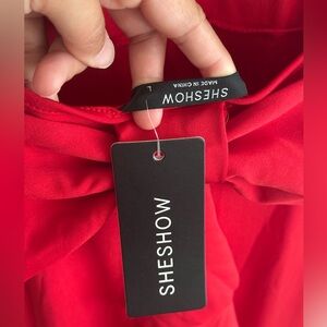 New with tags women’s size large SheShow long red dress with low cut bow back. Beautiful dress.