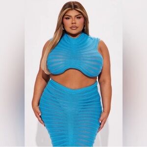 New Sheer Sleeveless Sweater Cropped Tank Top Maxi Skirt Set in Turquoise 2X