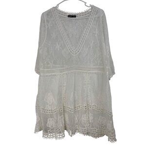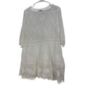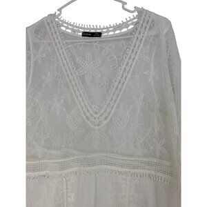 New Shein White Sheer Lace Swim Cover-Up Dress A-Line OS RAA10430