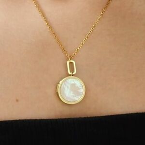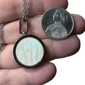 This modern take on the locket has shell insect design. The locket and chain are stainless steel which always keeps it shine and does not cause allergic reactions with the skin or discoloration. Rather than a traditional closure, it closes with a magnetic closure. Please see the size comparison in the photographs. It comes with an 18 inch chain.
