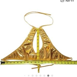 Eye-catching shiny gold halter top. Perfect for parties and events. America Disco Bohemian