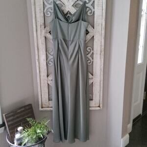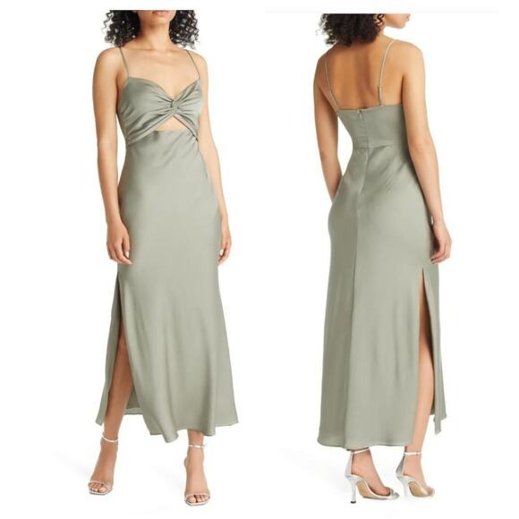 Grab this size 14 eucalyptus satin twist front cutout midi cocktail dress now.