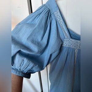 Step out in style with this elegant sky blue mini dress, featuring intricate embroidery. Perfect for any occasion.