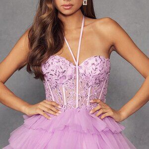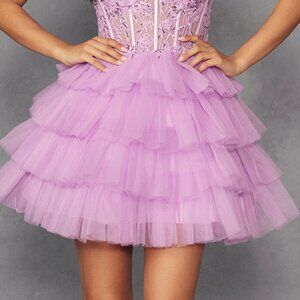 New Short Homecoming Tulle Gown w/ Sheer Boned Bodice & Ruffled Skirt JT923S