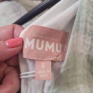 New With Tags Show Me Your Mumu Grean Gingham Plaid Ruffle Crop Top . Smocked Back , Balloon Sleeves, Ruffle Bottom , Sweetheart Neckline , Gauze Material . Length 17 in , Pit to Pit 18 in . Same Day Shipping/ Next Day .