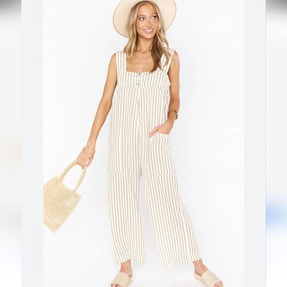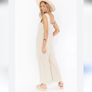 New Show Me Your Mumu Round Around Jumpsuit Everyday Beige Striped Size Large