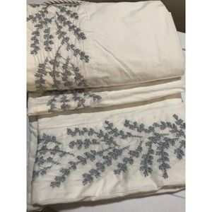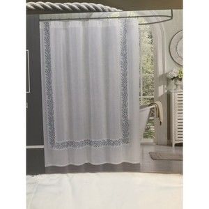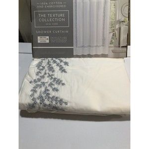 The Texture Collection Embroidered Floral Border Shower Curtain 100%cotton Embroidery is gray-blue color Condition is "New". Shipped with USPS Priority Mail.