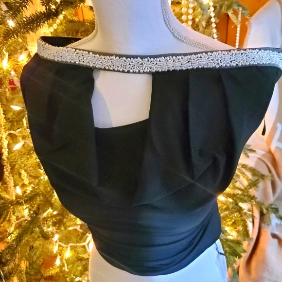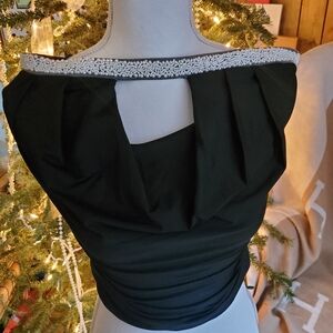 New Showpo Revolve HALTER pearl NECKLINE Keyhole TOP IN BLACK sz XS ruched
