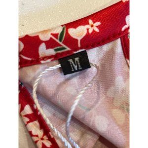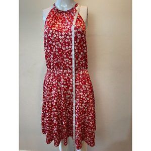 New Shows Womens Floral Mini Dress Halter Neck Back Keyhole Smocked Waist Red M