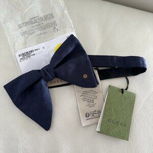 New Silk Gucci GG Jacquard Blue Bow Tie