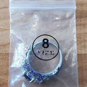 New Silver Amethyst Princess Cut Ring Purple Trim on Band