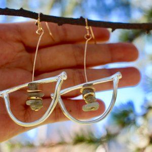 New High Quality Silver Gold Geometric Boho Natural Stone Crescent Drop Dangle Earrings
