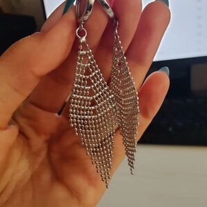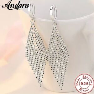New Silver Long Tassel Earrings Beads Earrings